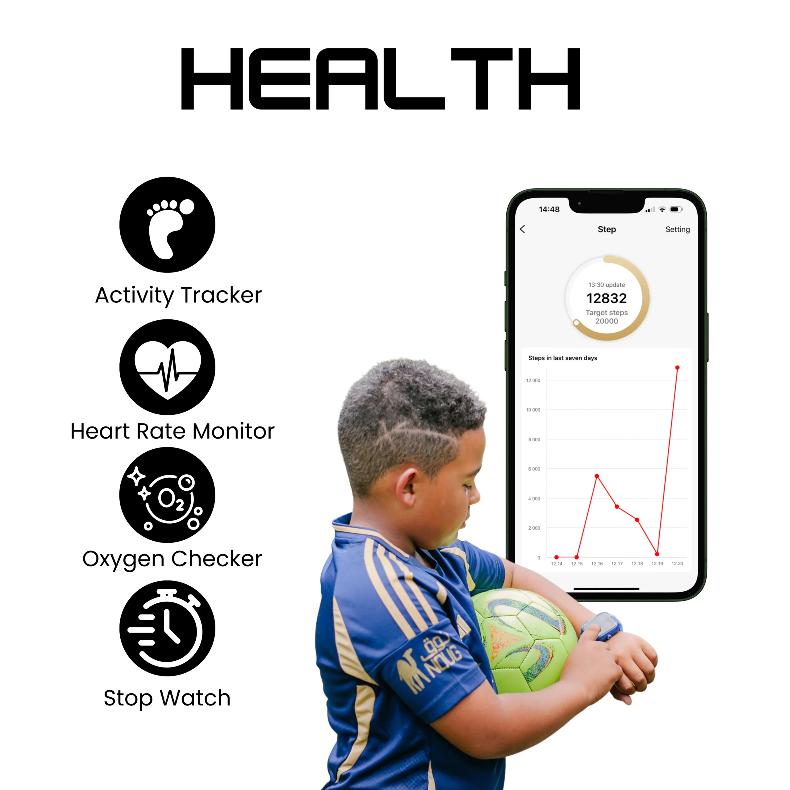 Healthy kids are happy kids. Funkyfing Jr. makes moving fun — from steps at school to playtime in the park. You’ll know they’re staying active, and they’ll feel proud hitting little goals along the way.